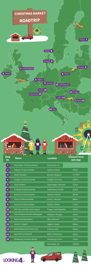 Starting and ending in England’s big metropolis, Manchester, we’ve calculated the roundtrip journey and spread it across 16 different European countries. It will span over 10,378km (6,449 miles), and include catching ferries, crossing borders, and so much more. If you’re ready for a real adventure this December, listen up…